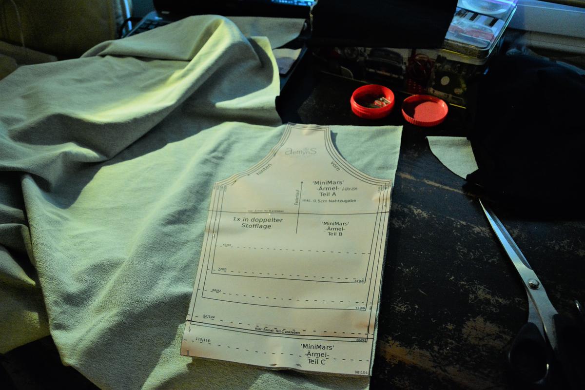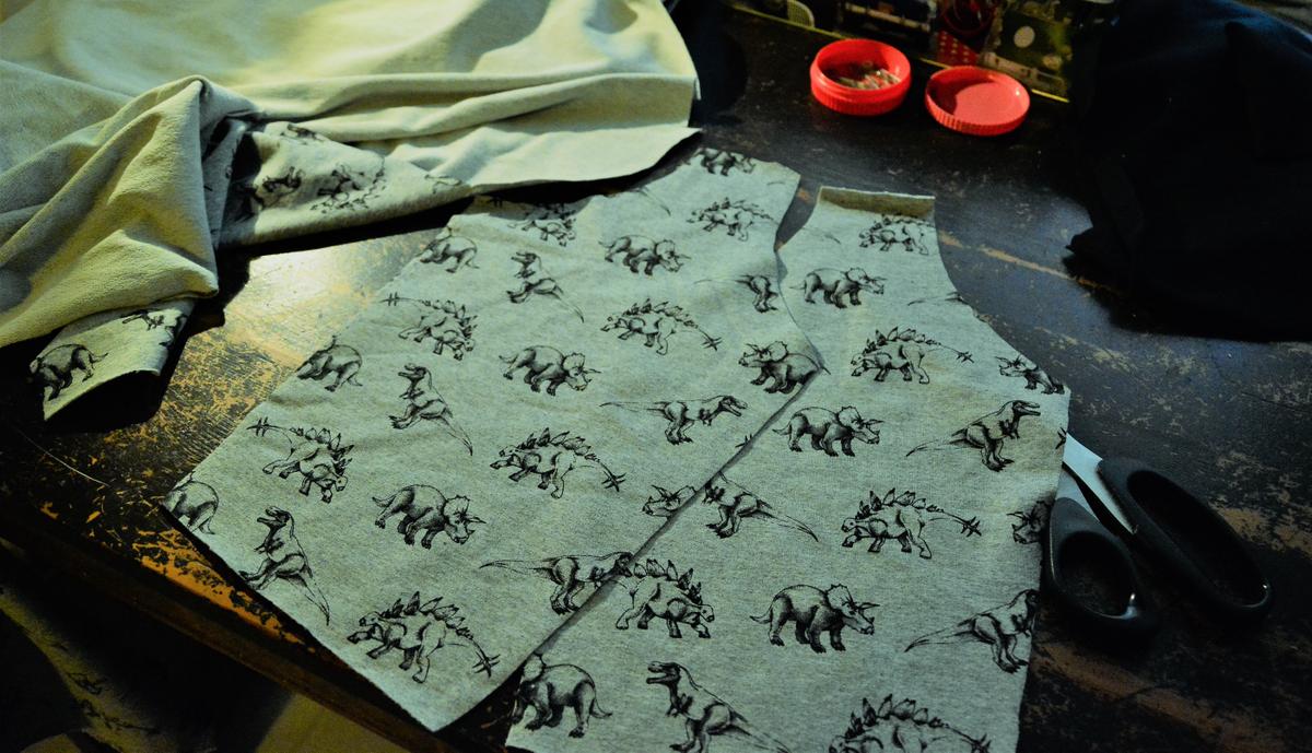 Lo primero que hice fue imprimir el patrón, cortarlo por la talla y colocarlo…ellas dicen que las tallas son un poco justas y como mi Mr. M mide 92 cm aprox….le hice la 94