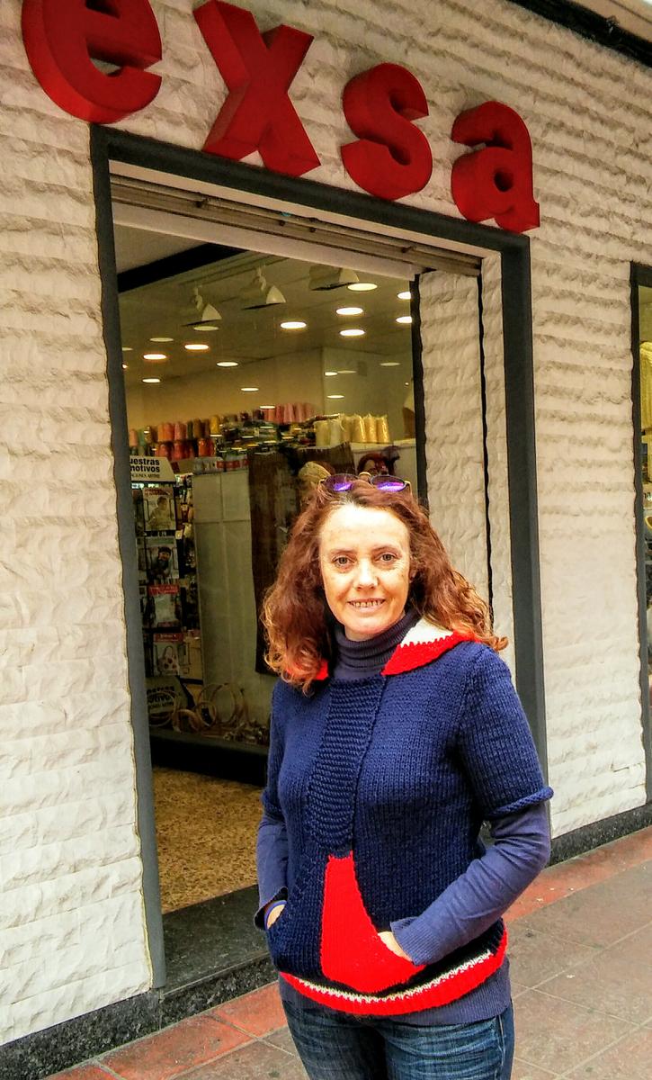 En la parte delantera le he hecho un bolsillo a modo de sudadera para meter las dos manos, una a cada lado. La parte derecha del bolsillo va en color marino y la parte izquierda en color rojo.