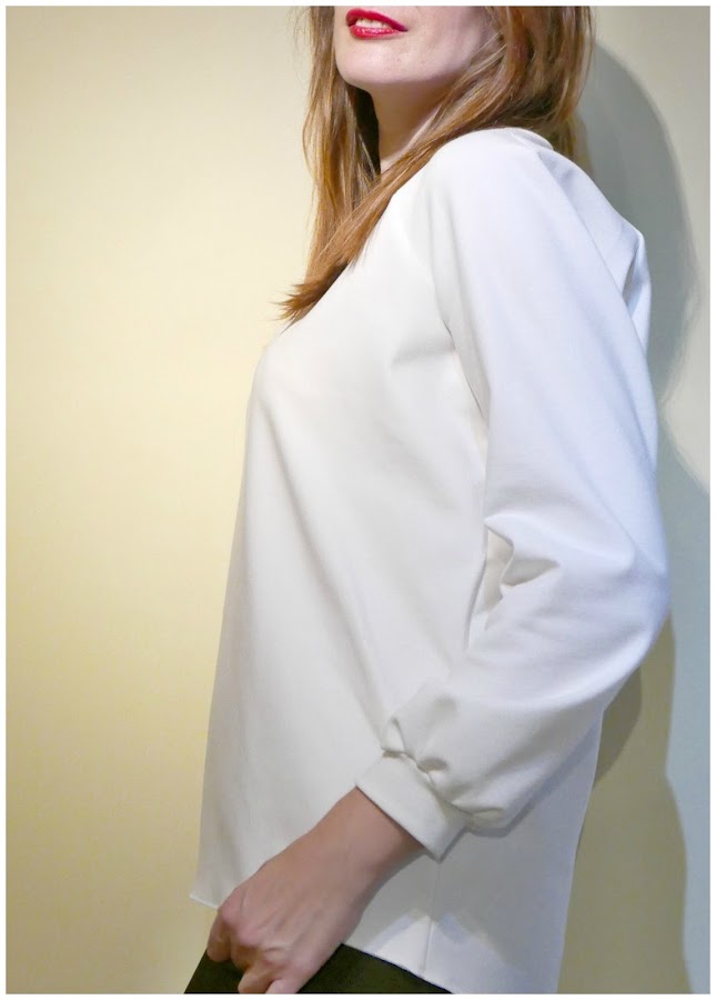 El patrón es propio, he tirado de los que hago para hacer blusas rápidas de mangas rangán y la he variado un poco haciendo el bajo un poco más largo por detrás.