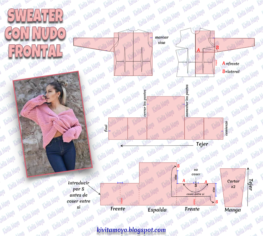 NOTA: Visualmente el tejido del cuerpo quedara atraveseado cuando se arme la prenda.
