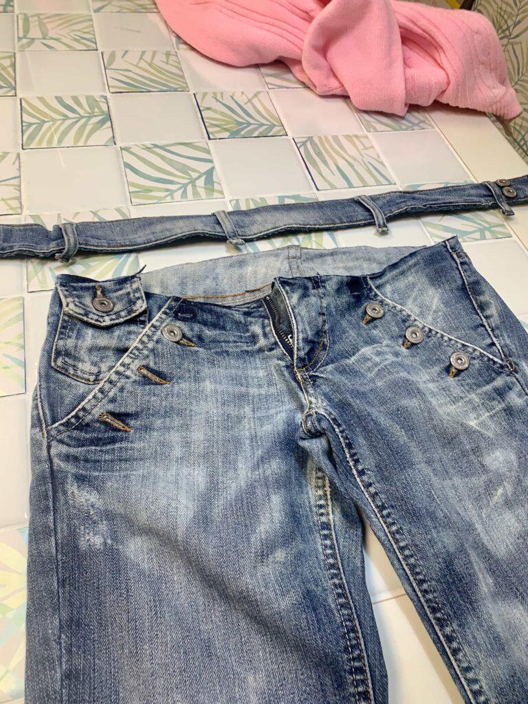 Pantalon vaquero que ya no quiero y voy a reciclar, lo primero que utilizo es la cintura.