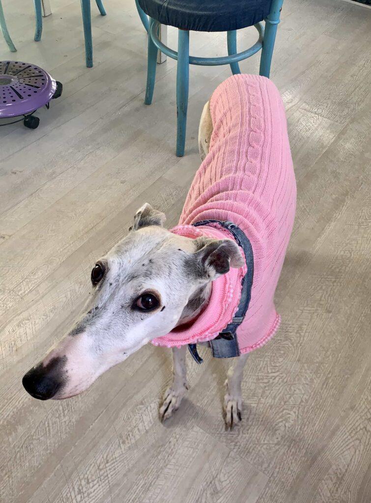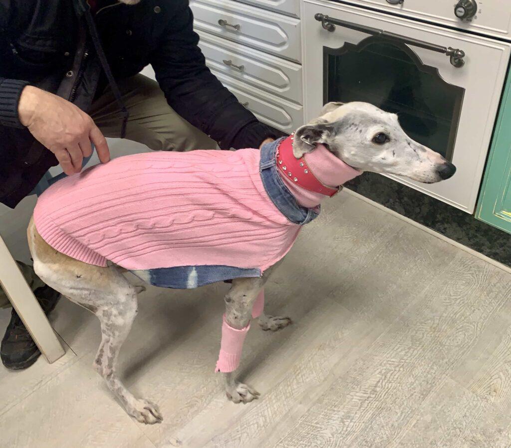 Flaqui nuestra perrita es la malcriada de casa y no es la primera vez que le hago un suéter y lo publico en el blog. Hoy vuelve a ser la protagonista y voy a enseñaros como le he hecho un suéter con un vaquero que tenía para reciclar y un suéter viejo de mi hija que ya no quería. La verdad que le gusta qué le hagan pruebas cuando le estoy cosiendo a ella, se nota que se siente querida, pero es muy intranquila y no se está quieta, así que he ido improvisando sobre la marcha y el resultado final tengo que deciros que me ha sorprendido para bien porque no sabía muy bien lo que iba a salir.