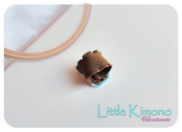2. Al finalizar la labor recortamos la tela sobrante y colocamos un trozo de goma por la parte de atrás puede ser cosida o pegada con pegamento termofusible ;)