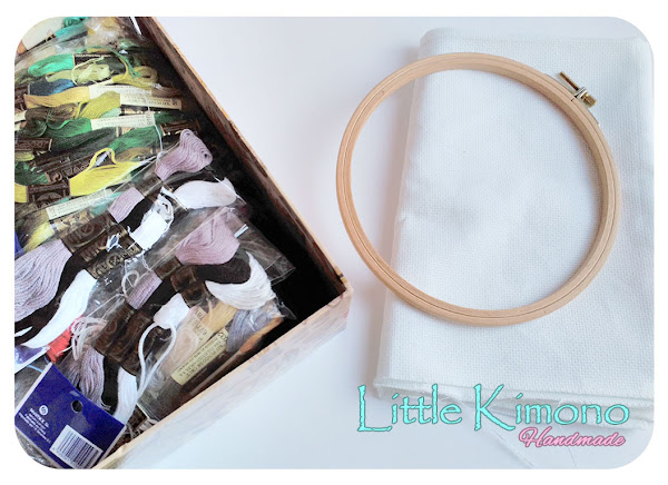1. El paso a paso es sencillo pues sólo os queda colocar la tela y el fieltro (para darle más rigidez) sobre el bastidor y seguir el patrón con mucha paciencia jiji, en mi caso éste pero podéis elegir el diseño que queráis ;)