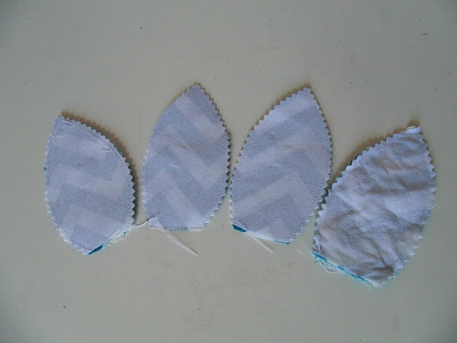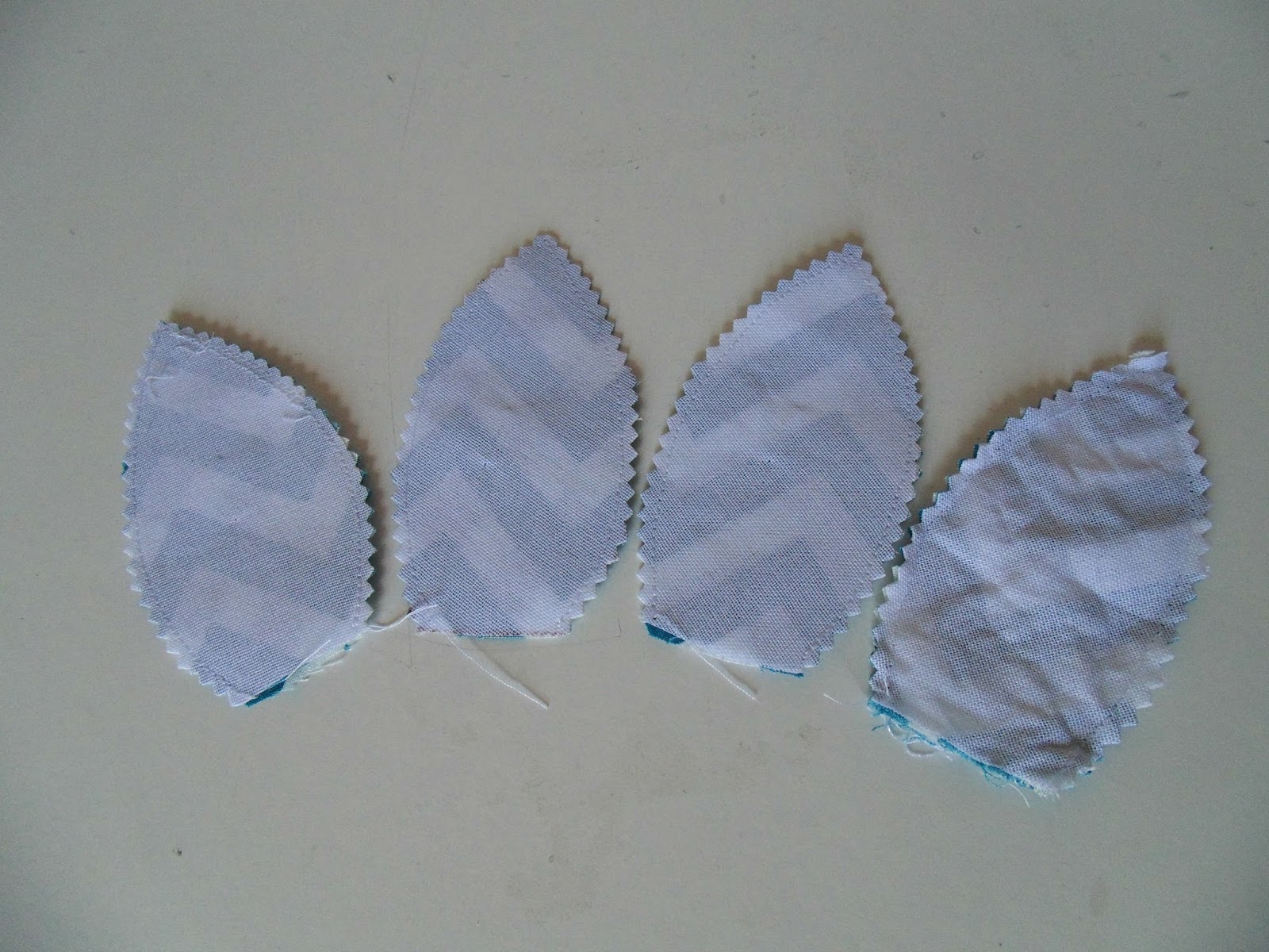 Primero cosí las orejas, enfrentando derechos, después de dar la vuelta las rellené con un poco de relleno para cojines.