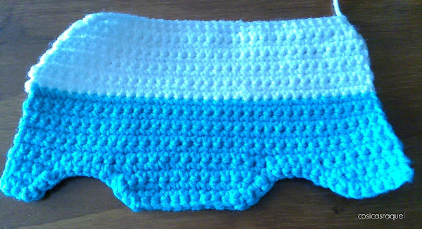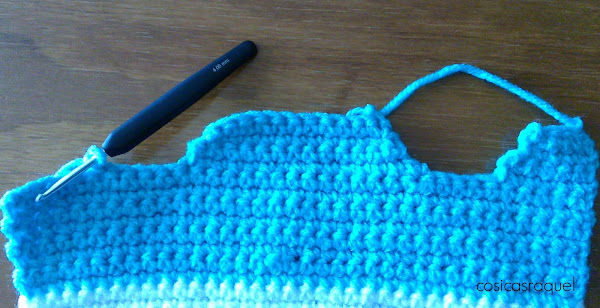 2.- 1pb en el primer punto + 28pb + 1aum en el último punto (32pb) 1cad y gira