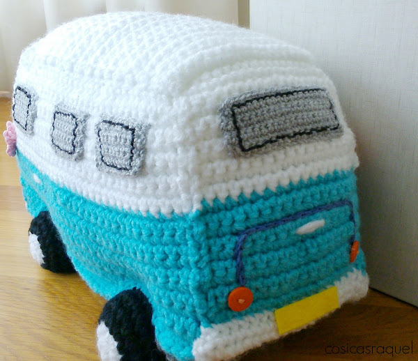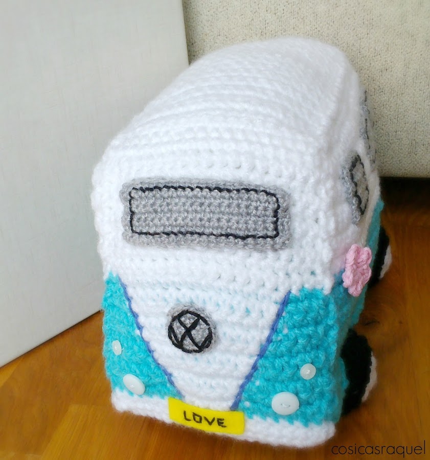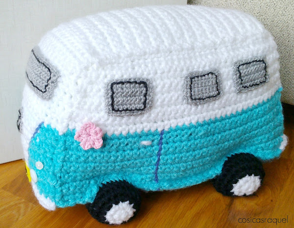 Hace tiempo la vi en Pinterest y me enamoré totalmente de ella pero el patrón estaba en una revista Inside Crochet se llama ,así que me quedé un poco chafada, otro día revolviendo más mira tu por donde que encontré un patrón gratis en holandés que aunque no era exactamente igual que la que me gustaba, me ayudó un montón para sacarla y tunearla a mi manera porque además está la versión en inglés lo encuentras aquí https://epsiej.wordpress.com/2014/09/19/volkswagen-bus-haakpatroon/
