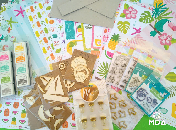 Además de esta bonita colección también estoy usando chipboard de de Kora Projects, sellos de Lawn Fawn y YoY Scrap... y todo lo que vaya viendo que pueda quedar bien y tenga por casa.