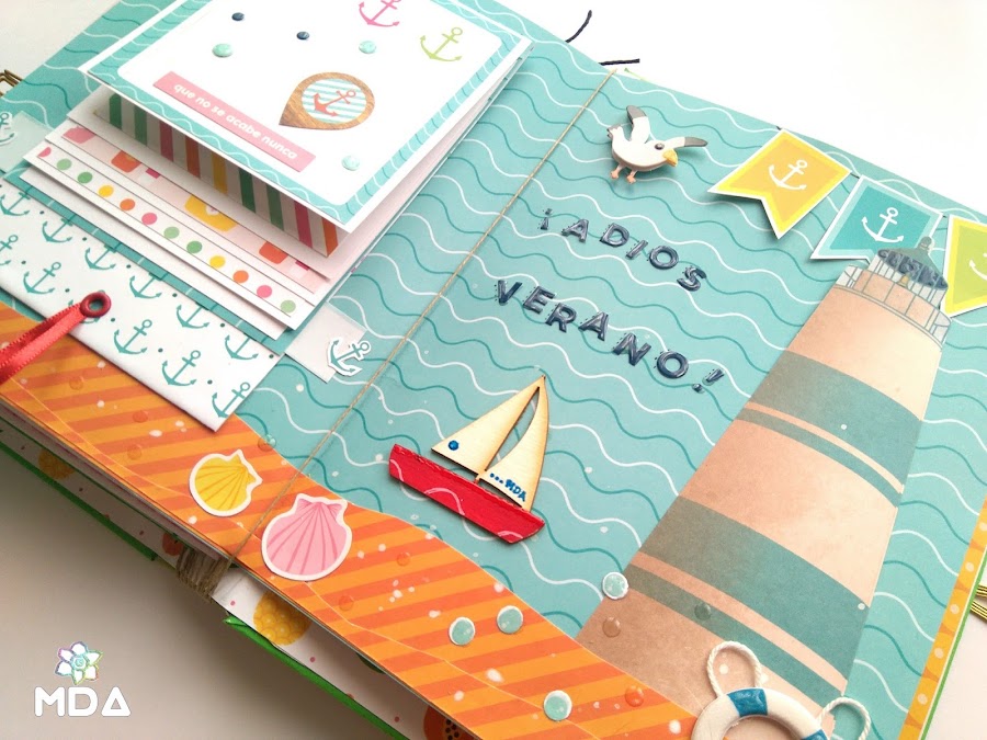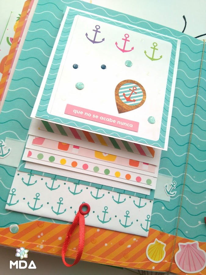 Para estas páginas ambientadas en el faro y alta mar he elegido una cascada donde guardar las fotografías, un sistema fácil y muy resultón.