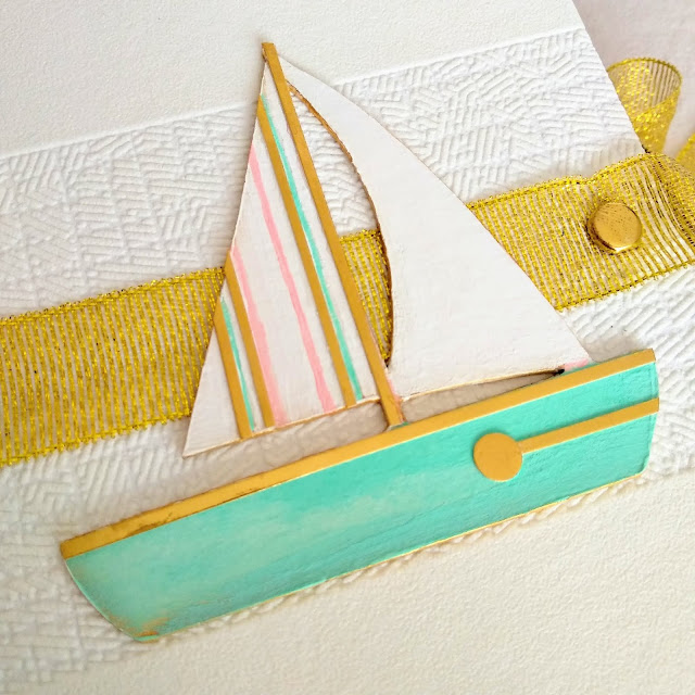Las tapas están forradas con un papel en blanco roto con efecto entelado que es una preciosidad y por eso mismo apenas le puse decoración, simplemente una cinta dorada que servía de cierre y un chipboard tuneado a juego con la colección y con el lomo, aquí si que me explayé un poco más y le puse incluso el título en letras de cartón doradas.