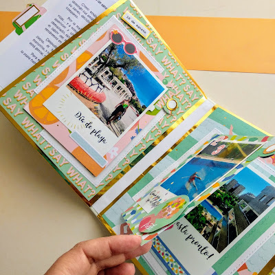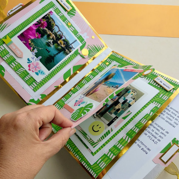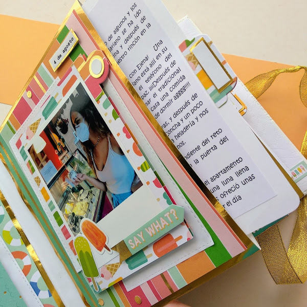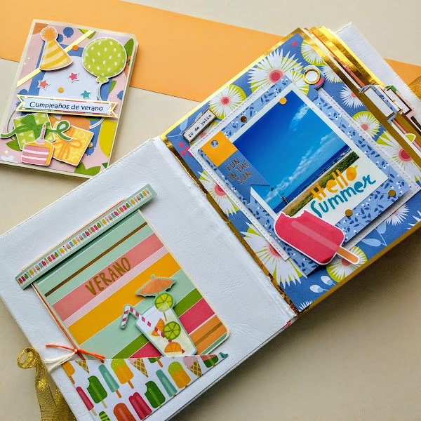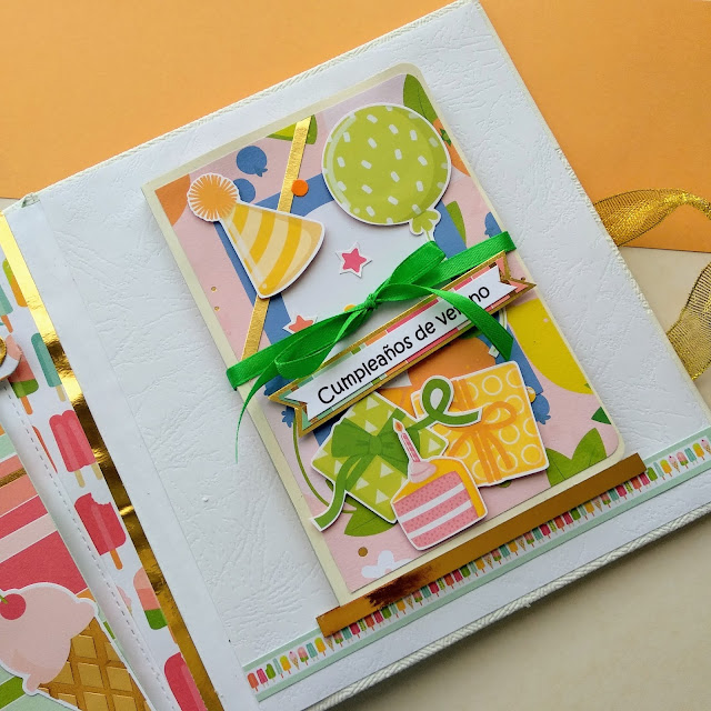 Además, este álbum lleva, por así decirlo, dos anexos, uno tras la portada en un bolsillo de esquina y otro al final atado con una cinta verde, se trata de una libretilla donde cuento anecdotas y cosas del verano y un minálbum donde documentar los dos cumpleaños que celebramos en estos meses estivales.