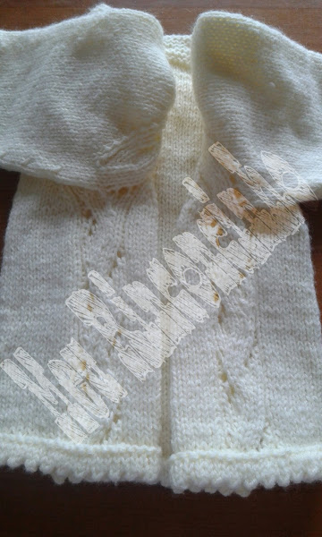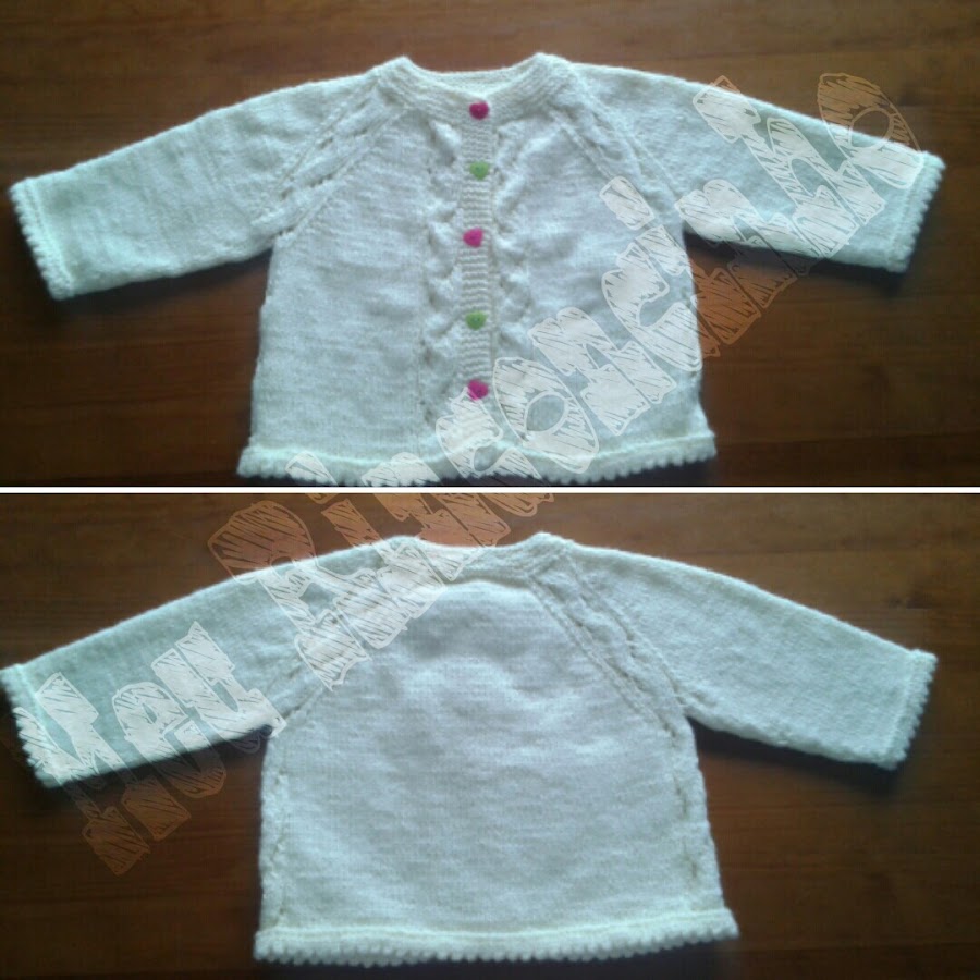 Esta chaqueta es del reto de Septiembre de Things to knit y hay dos tipos de chaqueta podeis verlas aqui.. la que yo considero mas de niño con pto bobo y trencitas y lo que considera para niña zig zag con calados y terminaciones en piquitos (puños y cintura)
