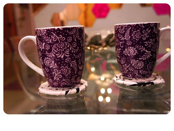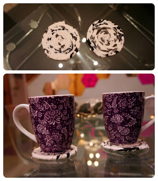 Any fabric stripes remaining from any sewing project ? Don´t trow them away....you can make a few coasters just by adding a piece of rope ^^