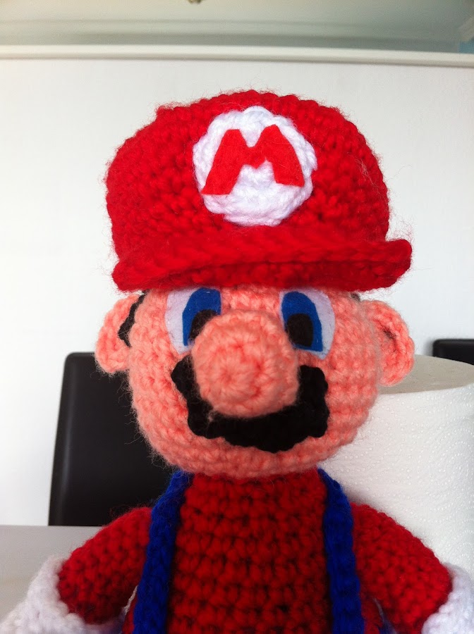 ¡Buenas! Un mini Mario rápido de tejer (unas 3 horas y media). Su hermano Luigi y Yoshi también están tejidos pero en formato muñeco de vudú (plagaditos de alfileres) hasta que me apetezca coserlos. ¡Saludos!