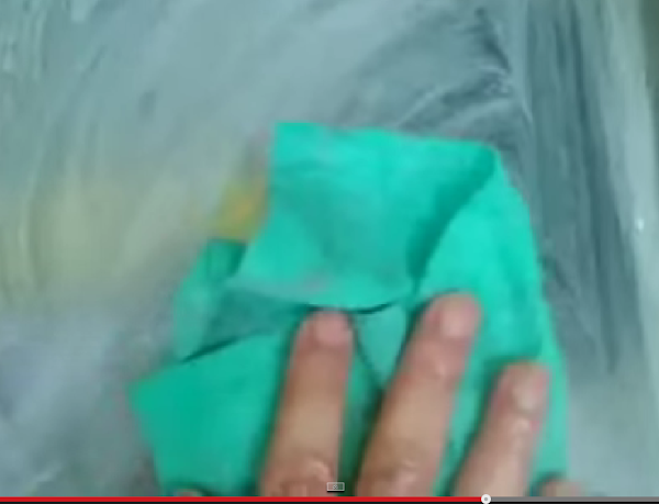 PROCEDIMIENTO. Mojas la fibra con agua y le quitas el exceso de agua, después pasas la fibra sobre el cemento blanco y suavemente deslizando la fibra sobre el vidrio vas tallando hasta cubrir toda la superficie, si necesitas más producto repites el mismo procedimiento y ahora con un paño húmedo retiras esa pasta que se formó hasta limpiarlo completamente y voilá, como magia tu vidrio quedará impecable.