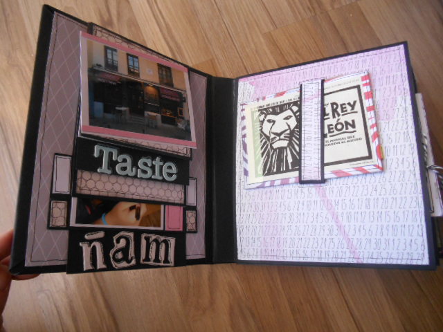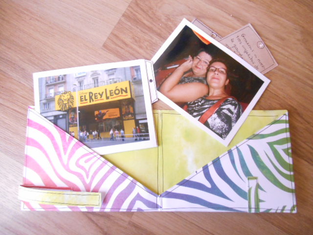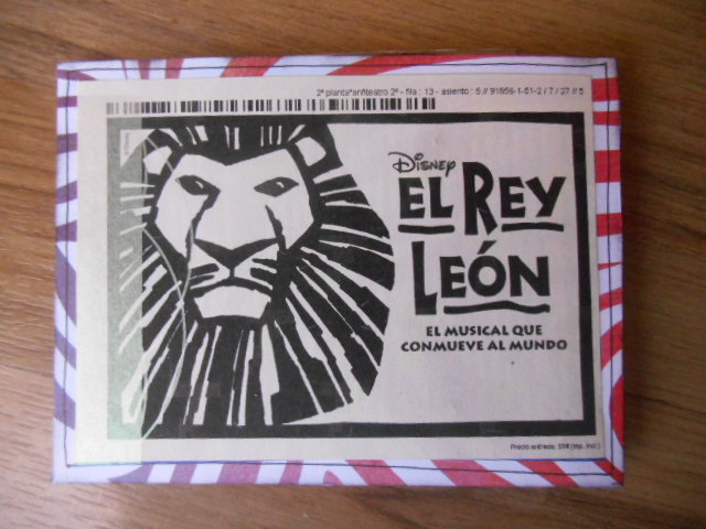 Nuestra amigueta Angie de Scrappy Corner nos hizo un tuto donde nos enseñó a hacer un tarjetero muy cuqui , el papel simula las rayas de una cebra, de tonos calidos, he aprovechado la entrada del musical para hacer la portada y contraportada del tarjetero, dentro tarjetitas con fotos y sentimientos. Fue impresionante, un musical precioso, la música, los personajes, las voces, el vestuario, la puesta en escena, lo único malo el vértigo, pero se te pasa por que la obra te hace meterte dentro, muchas risas y nuditos en la garganta, nos encantó!!