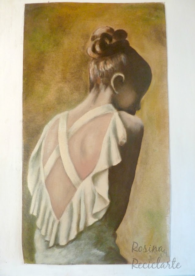 La tela de fondo era color crudo(lienzo) y además estaba por demás sucia, entonces le di una mano de blanco