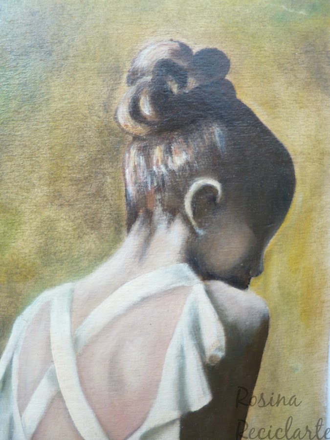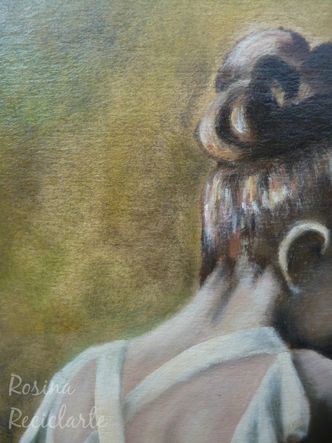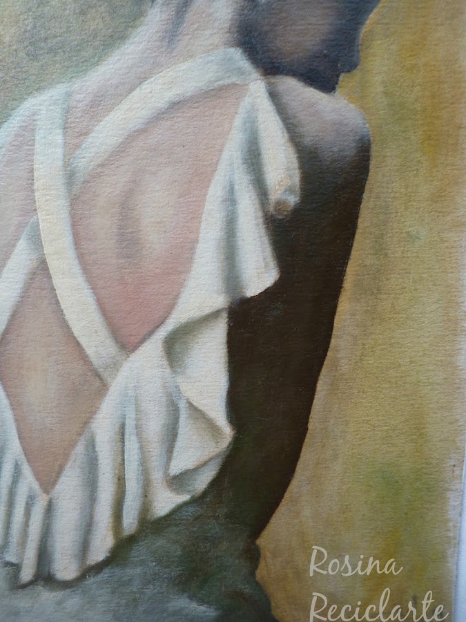 La "Mujercita en blanco", así se llama la obra;había sido enmarcada por mi, te vas a dar cuenta por las imperfecciones del paspartú y lo mal pegada que está la lámina.