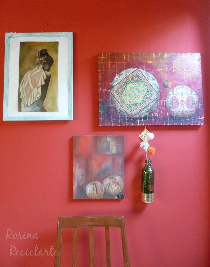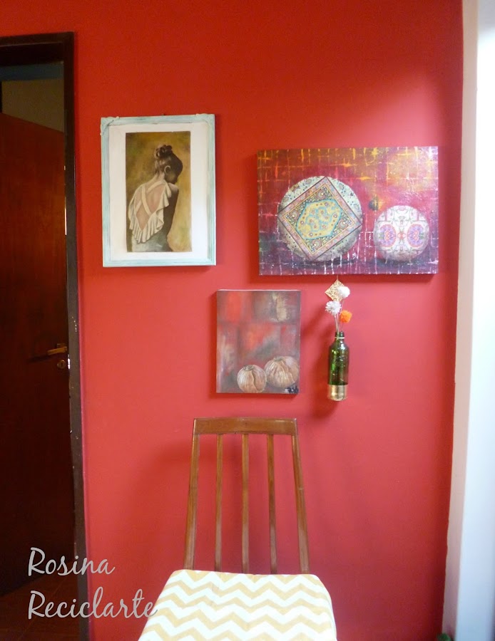 Cuando hace unas semanas les mostré la botella-florero ,les contaba que notaba que faltaba algo en el ángulo opuesto a donde la colgué.