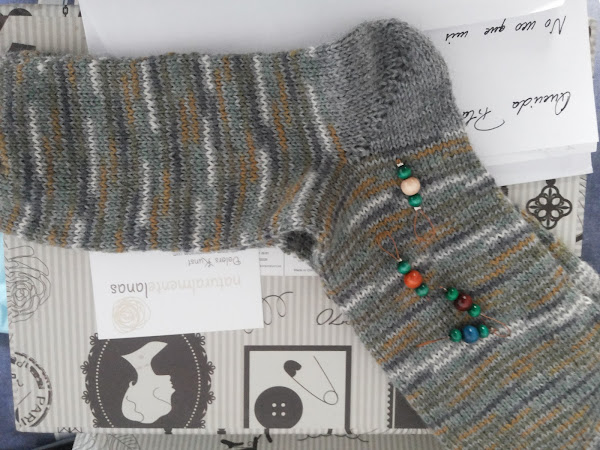 Con un poco de retraso comuníco que ya están aquí mis calcetines, tejidos y enviados por Dolors. Y muy bien acompañados por unas lanas maravillosas que me recuerdan a mi tienda favorita en Odense.