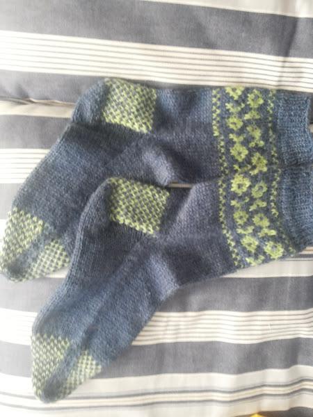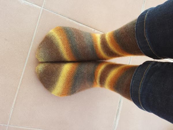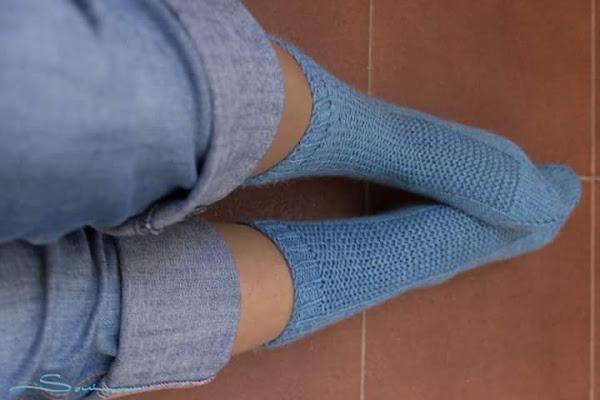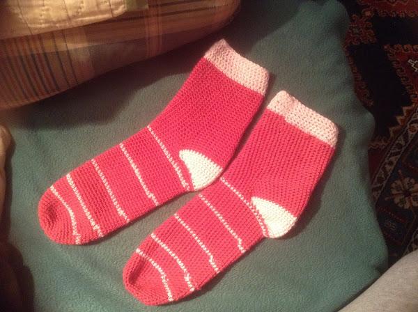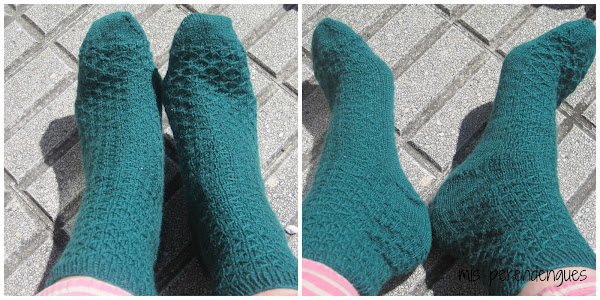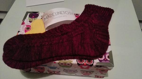 En una edición de primeras veces, esta fue la primera en la que se admitió un par de calcetines de ganchillo, tejido por Patrygumis. El par en cuestión no fue el único, sorprendentemente fueron dos las participantes que recibieron este año calcetines de ganchillo, que lamentáblemente no eran de la talla adecuada. La conclusión que saco de esta experiencia es que los calcetines de ganchillo no quedan bien si se tejen para otra persona, especialmente si esa persona vive a cientos de kilómetros, así que el año próximo no se admitirán en el intercambio.