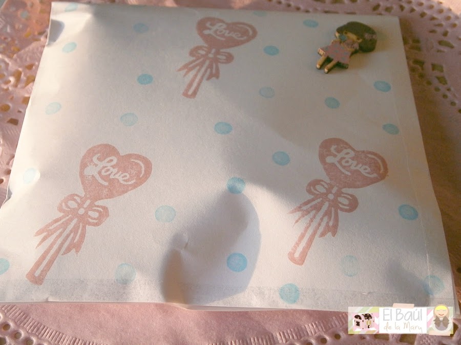 Últimamente nos ha dado por utilizar papel blanco para nuestros envíos. Y la verdad es que nos encanta el resultado que da sobre todo combinado con estampaciones en color pastel como es el caso.