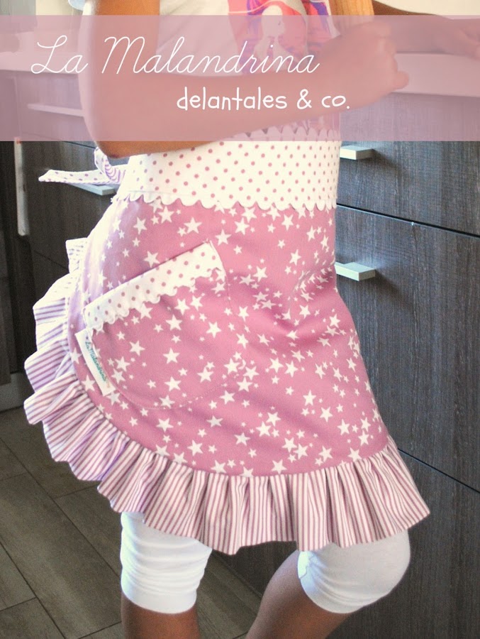 Un delantal La Malandrina de lo más dulce *** Il grembiule da bambina piú dolce Estrellas, topos y rayas para este delantal de niña en rosa y blanco *** Stelle, pois e righe per questo grembiule rosa e bianco La tela es un piqué de algodón, *** La stoffa é un piqué di cotone bolsillo lateral, *** taschina laterale volantes y picolina blanca, *** Volan e zig-zag bianco para una Malandrina c ...