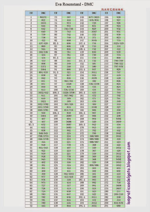 Tabla de conversión de hilos Eva Rosenstand-DMC...