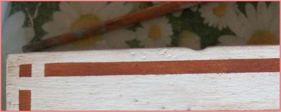 Con la ayuda de una cinta de carrocero ( o cinta de pintor) muy estrecha, hago las lineas laterales que pinto en color marrón chocolate.