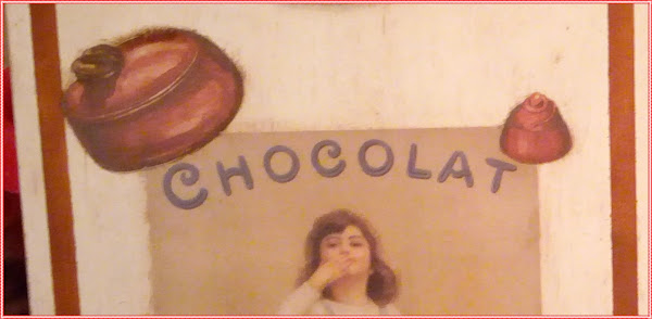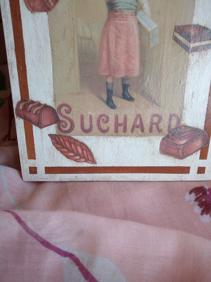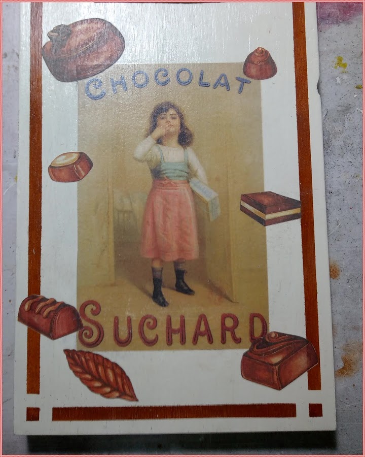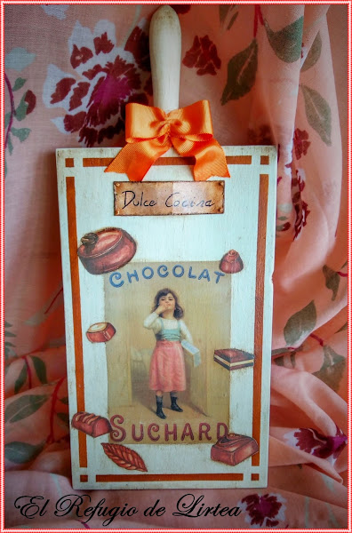 Participo con una tabla de cocina que he decorado con motivos muy dulces..bombones.
