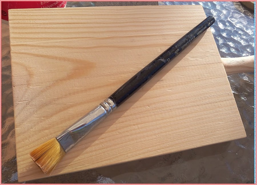 Una vez todas la imágenes pegadas, damos una mano de barniz o del mismo medium por toda la tabla, así evitamos que queden señales del pegamento a la vez que protegemos todo.