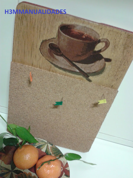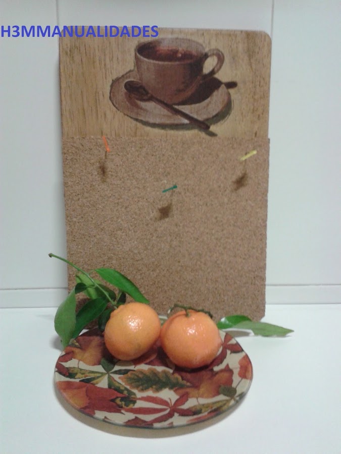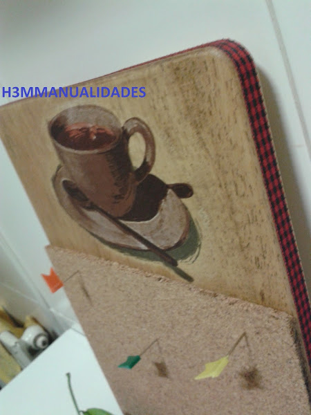 No tengo el paso a paso. Pero te puedo contar que es una tabla de madera, a la que di cera marrón oscura en la mitad superior, mientras en la inferior le puse un corcho pegado con cola para poder pinchar todo tipo de notas y recordatorios.
