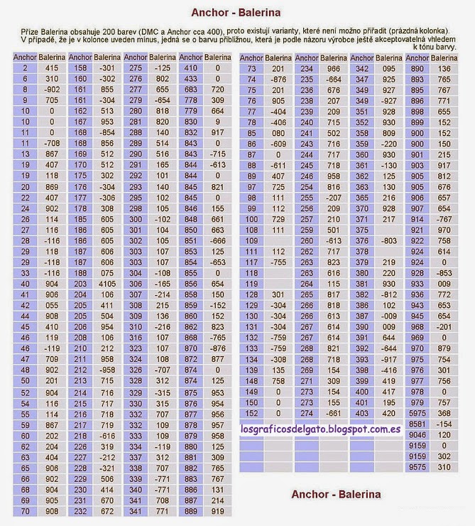 TABLA DE CONVERSION ANCHOR-BALERINA