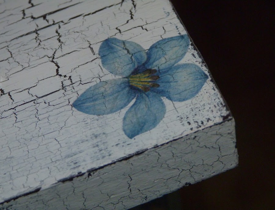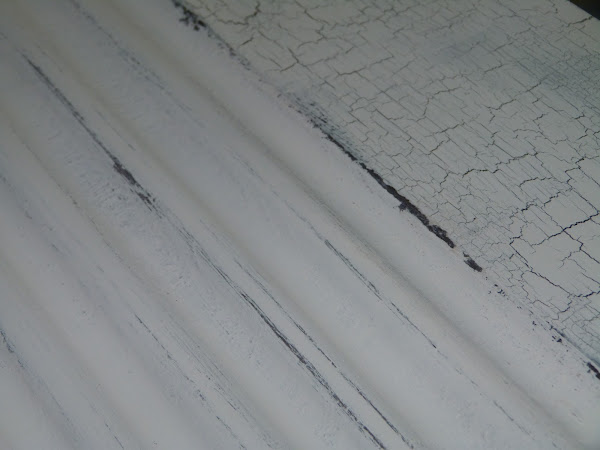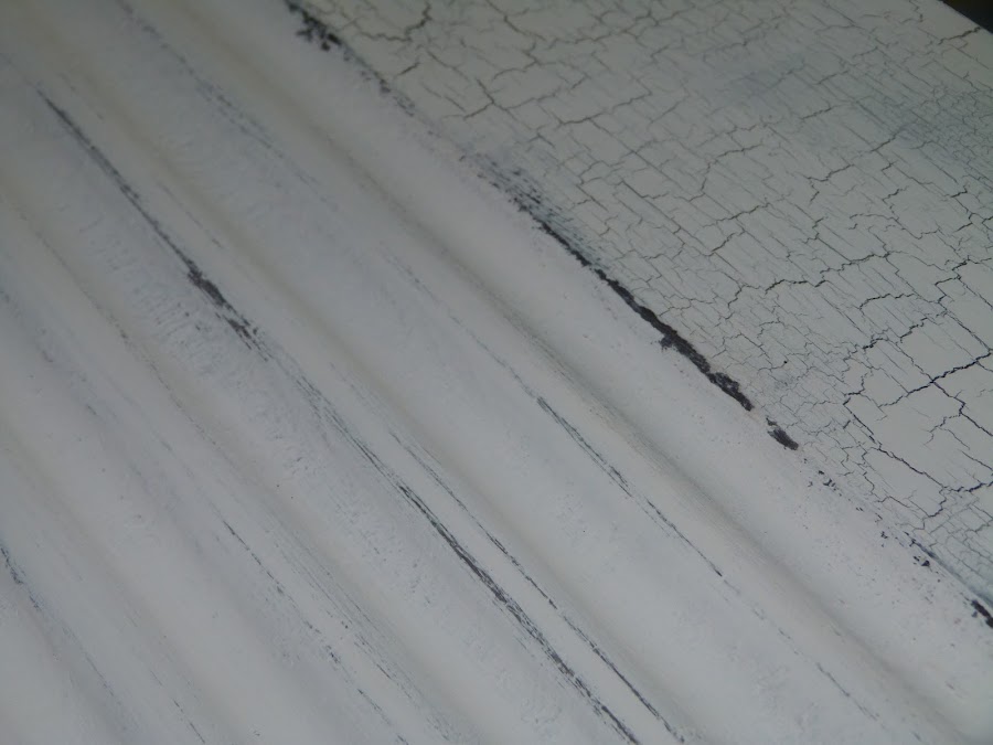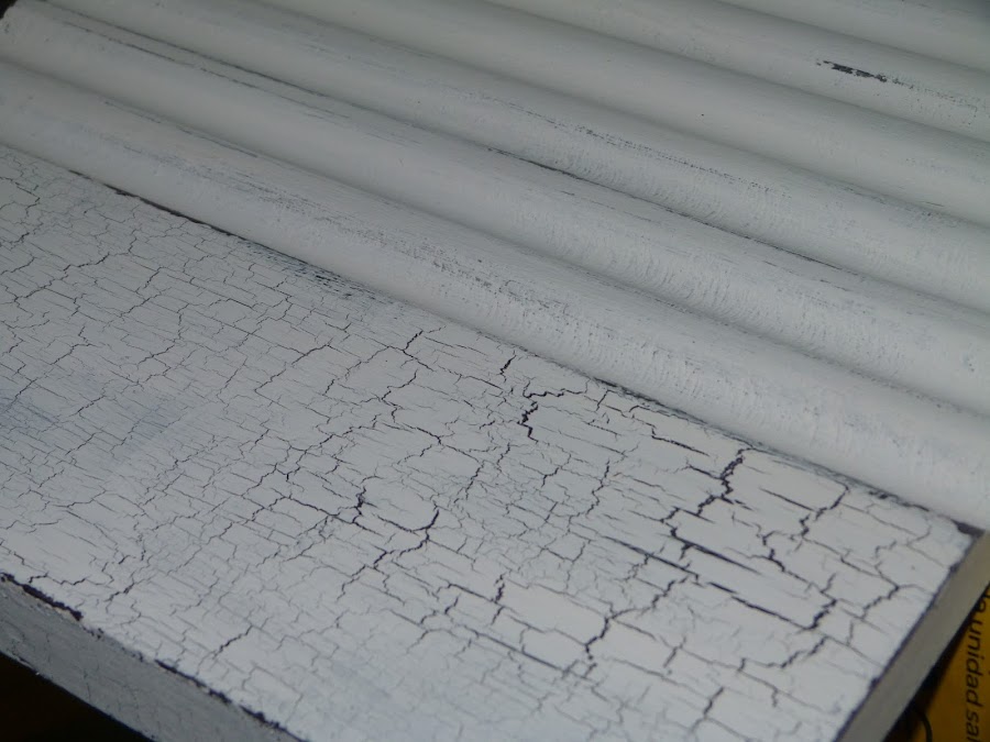 La parte inferior de la tabla la he craquelado de forma irregular, aplicando mucho craquelador por algunas zonas y muy poquito por otras.