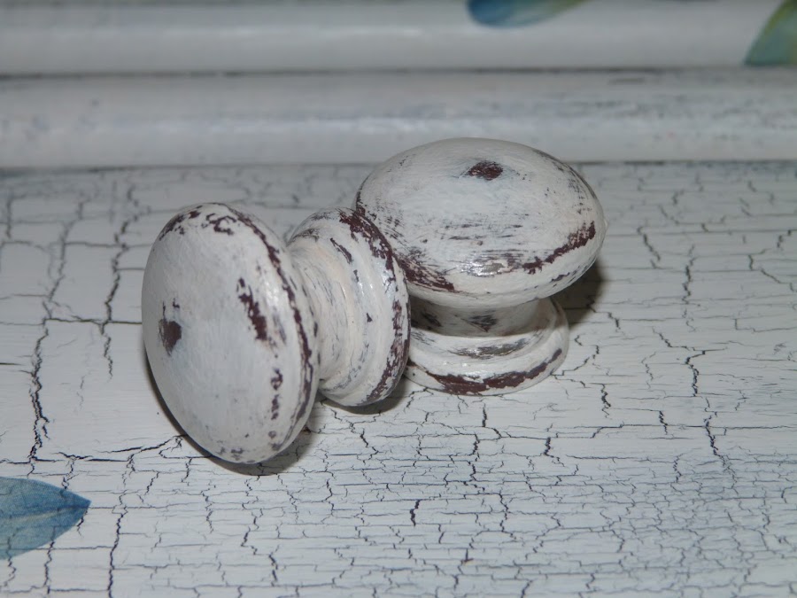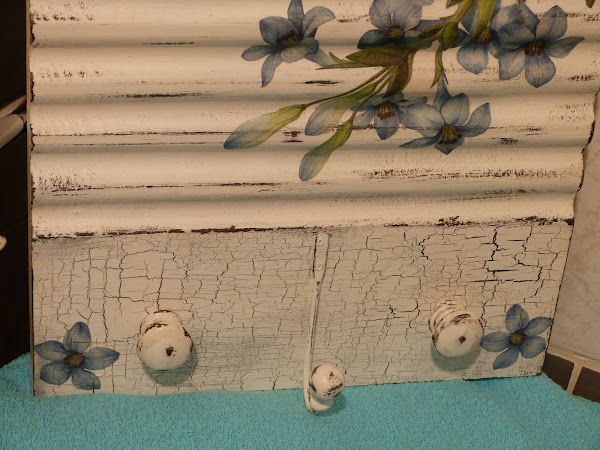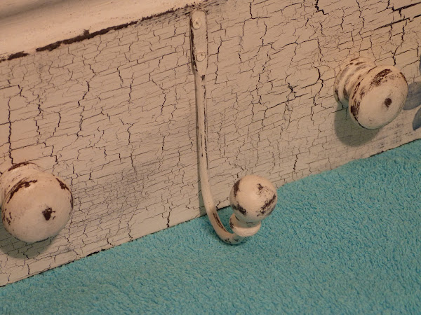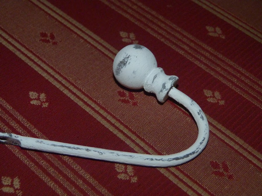 Los colgadores son de plástico imitando madera. Primero les he dado imprimación, después pintura marrón oscuro y por último blanco. Después, un buen desgastado con lija.