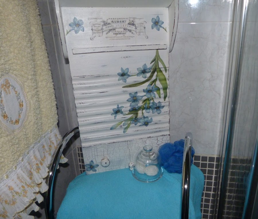 Y es esta parte la que voy a utilizar como colgador o toallero. En uno de los baños de la casa del pueblo hay una estantería con repisas de cristal que os podéis imaginar, no sirve más que para llenarse de polvo constantemente. Además, hay un armario amplio en este cuarto de baño, así que la dichosa estantería es totalmente prescindible: fuera!!! que yo cuando voy allí, pretendo descansar lo más posible y no pasarme el día limpiando!