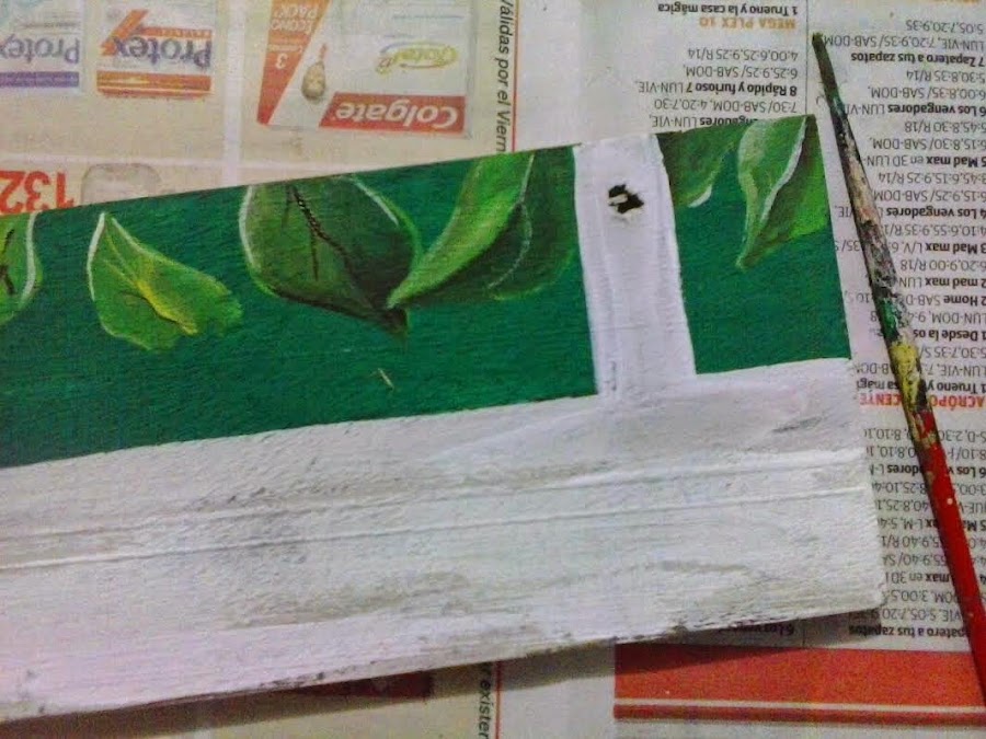 Lo que se me vino a la cabeza fue la de pintar un jardín por eso dividí en dos colores la madera, verde que es donde haremos las flores y las hojas y negro como base para hacer la baranda de donde saldrán la flores,