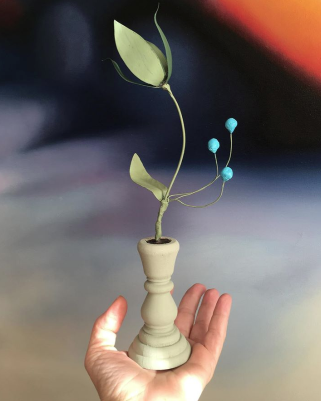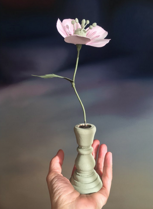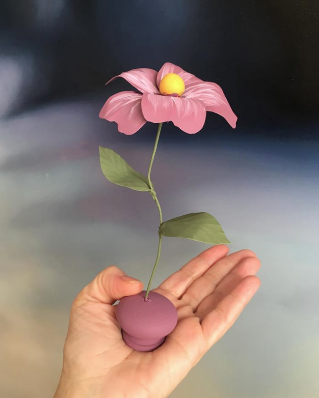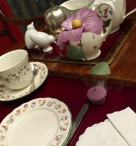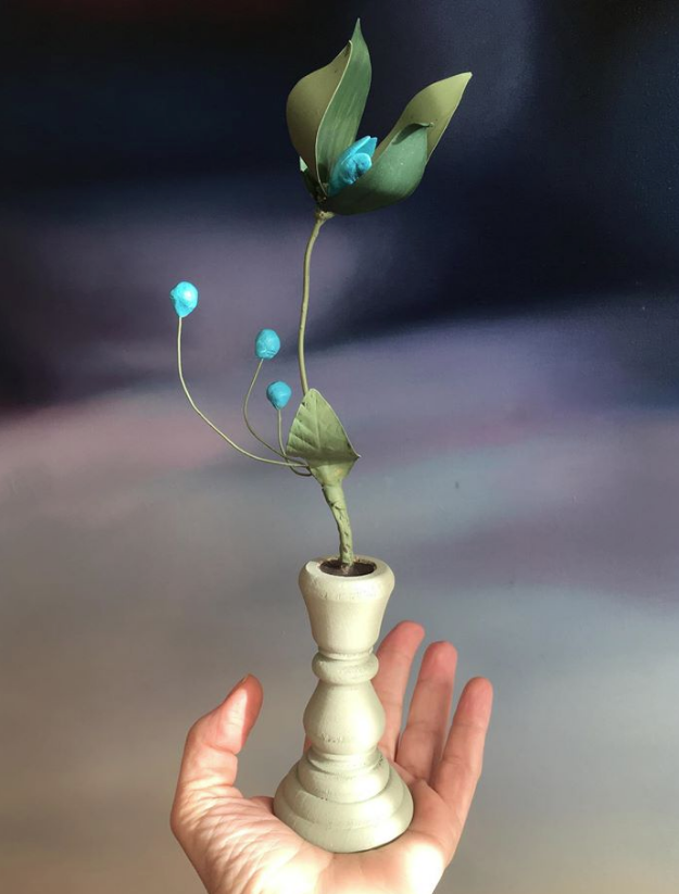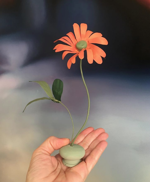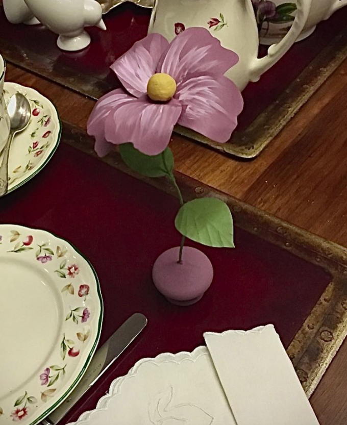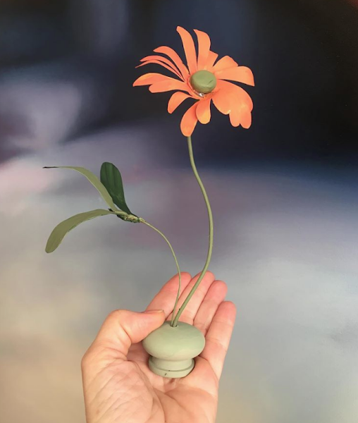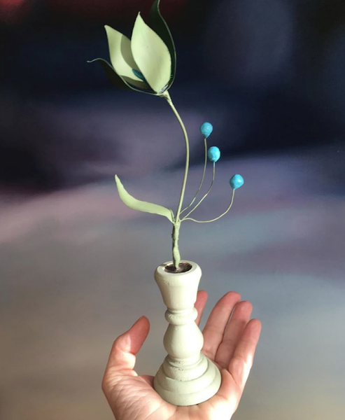 Flores realizadas en metal y pintadas a mano inspiradas en las flores de distintas vajillas