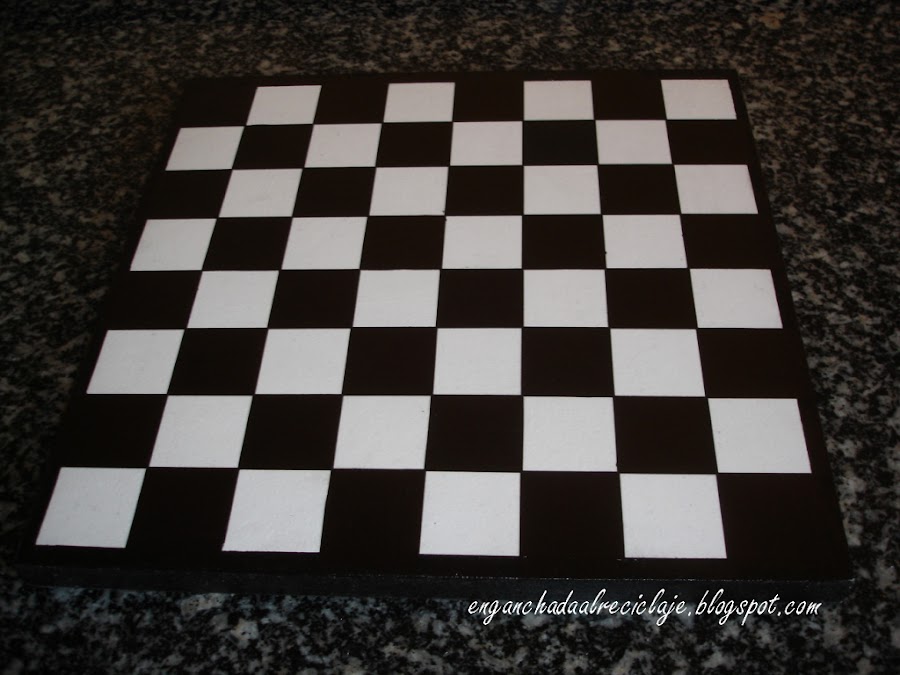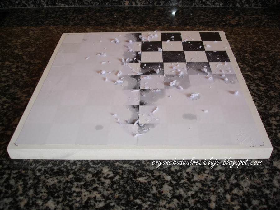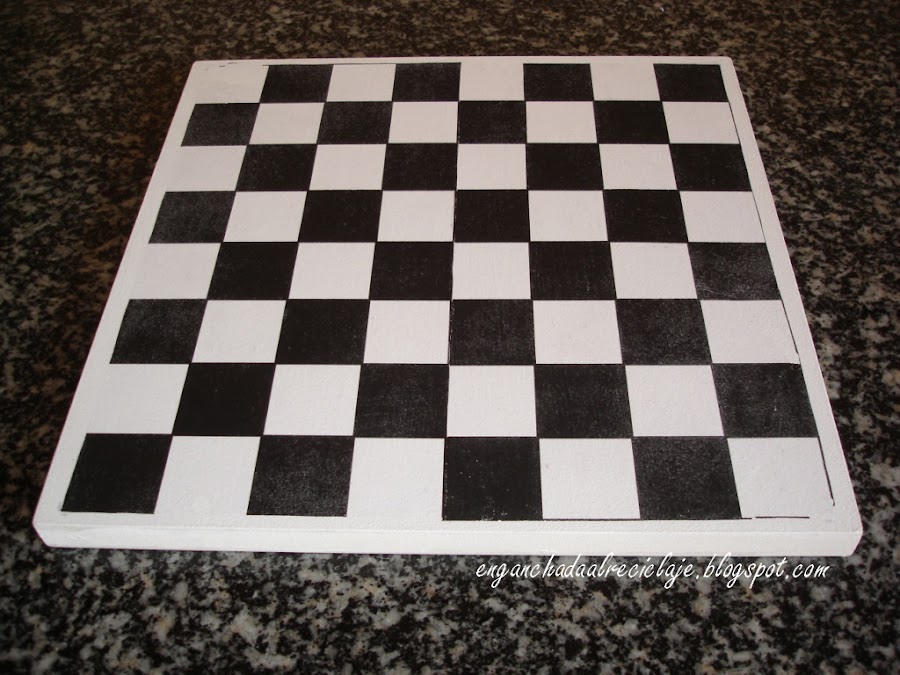A mi sobrino le compraron las piezas de ajedrez en un viaje a Grecia pero sin tablero, así que con un tablero de aglomerado y la idea de una amiga de hacerlo con transfer me puse manos a la obra.