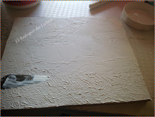 En la parte superior aplico el gesso con espatula y la parte inferior lo hago dando pequeños golpecitos para crear como una capa más rugosa.