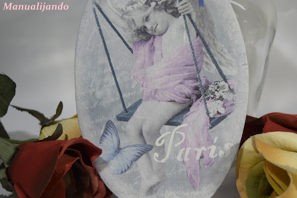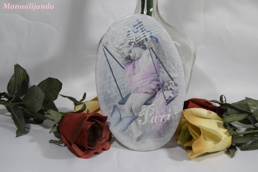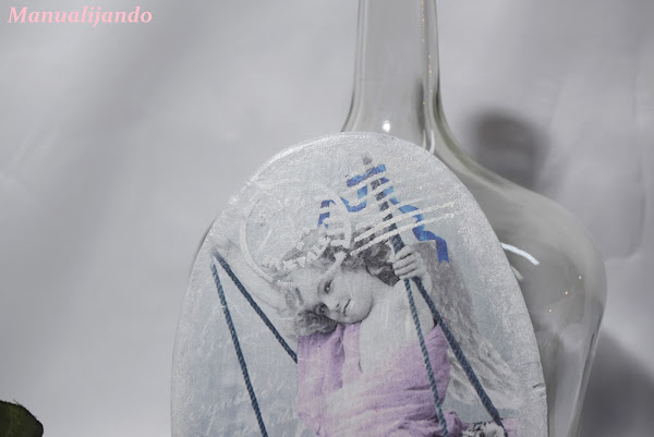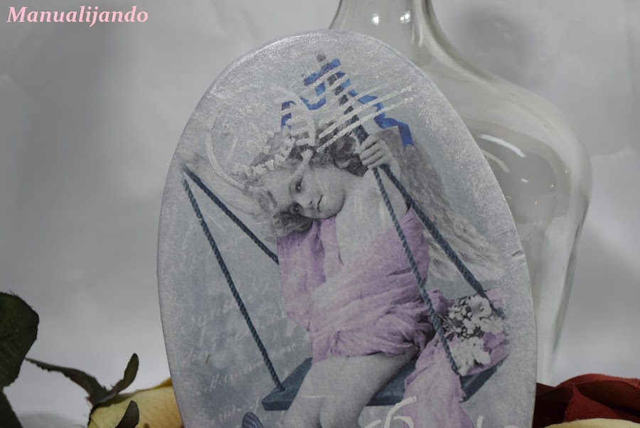 Pinté y puse la imagen del angelito en decoupage con papel de arroz.