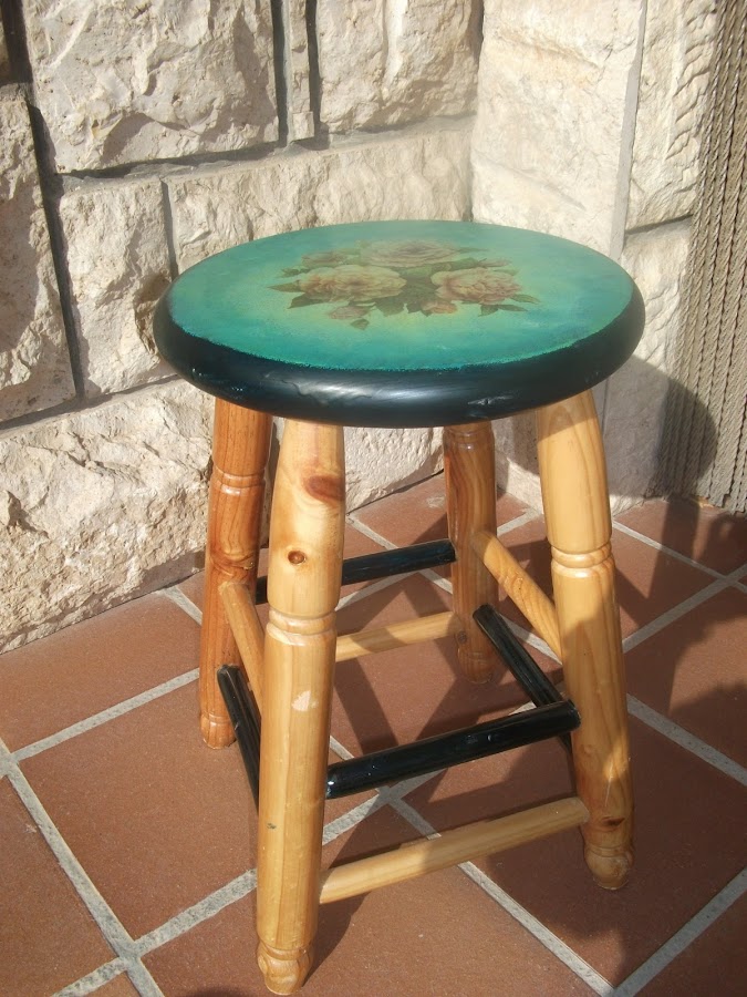 Acabo de terminar un proyecto al que le tenía muchas ganas, no por el proyecto en sí sino por las técnicas que iba a poder poner en práctica. He aquí el resultado: Es un taburete de Ikea, como este pero con las patas largas: Primero la he pintado con chalk paint Autentico, el color blanco neutro. Un placer pintar con chalk. La compré en Il Condottiero, de Blanca Nuño de la Rosa, del blog La cóm ...