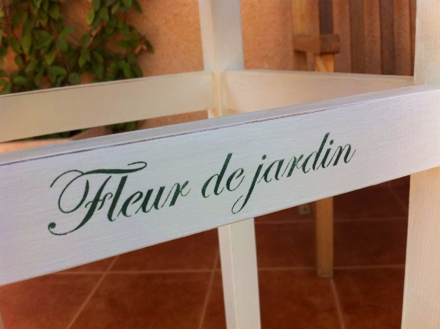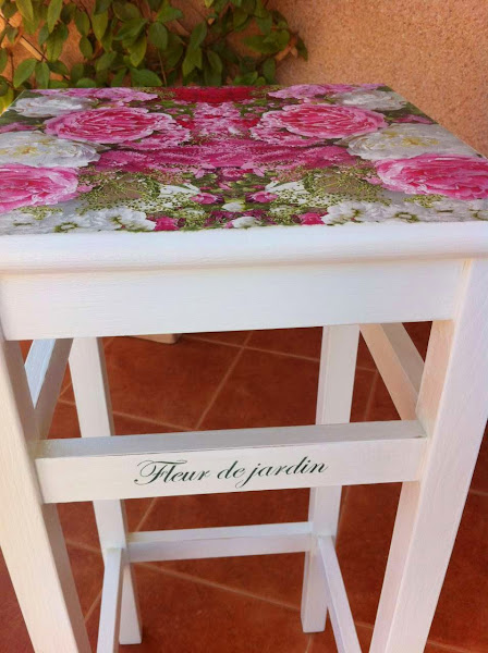 Le iba a poner en el asiento un papel de arroz muy mono, pero mi amiga Belén tuvo el acierto de probarle esta servilleta tan espectacular...y lo tuve claro, clarísimo. Se quedaba así. Primavera total. Shabby total.