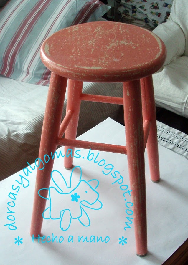 Son 3 taburetes que tenía por casa y que necesitaban un cambio de imagen. Lo siento pero no he hecho foto del antes de restaurar.