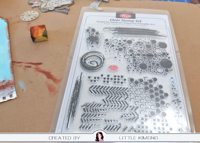 También probé la pátina con sellos y se da genial, yo tengo estos sellos de silicona Grunge Backgrounds también de @Viva Decor os los recomiendo porque son un básico que viene genial para trabajar y dar vida a fondos.