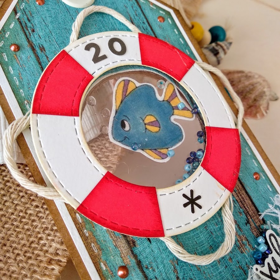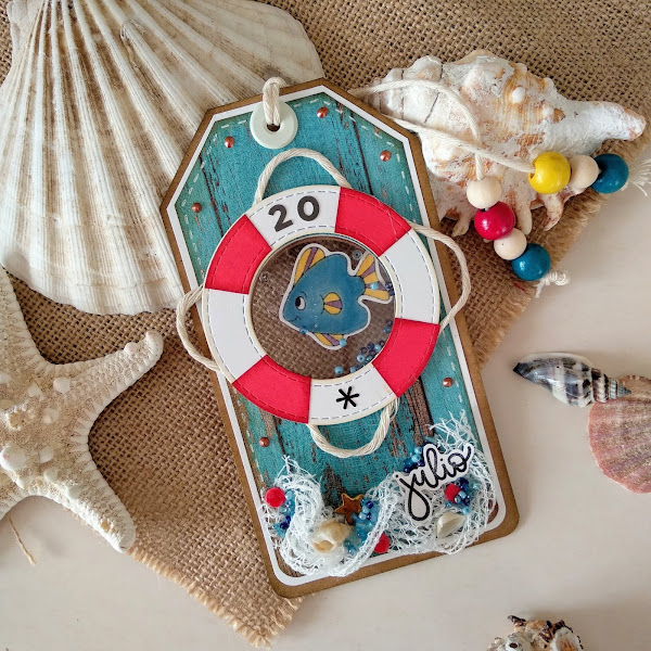 Me decidí por hacer un flotador como shaker pero totalmente transparente y la temática muy marinera, con colores: turquesa, blanco, rojo y kraf. Este es el resultado.