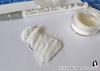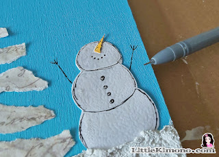 3. Para acompañar al arbolito se me ocurrió hacer un muñeco de nieve sobre cartulina y decorado con polvos de emboss.
