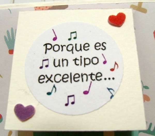 Un trocito de papel, también impreso en mi impresora,con la palabra Música, que arrugue, entinte y pegue, dejando huecos para dar relieve.