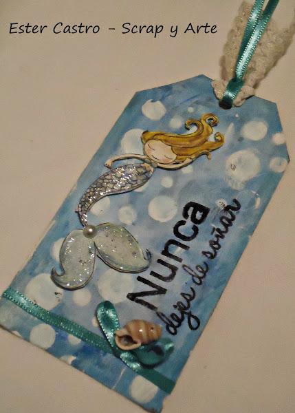 Les traigo un Tag decorado con la Técnica de Mix Media y aplicación de una Bella Sirenita, sello de Toreladas con el cual participo en el 1º Reto del Año de Toreladas y Elección de DT