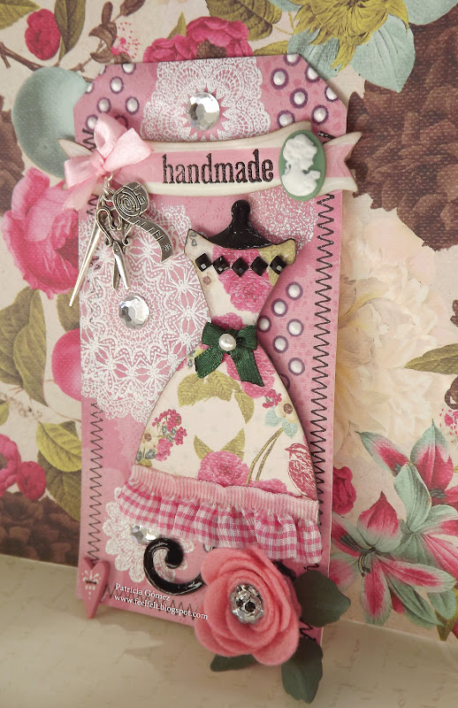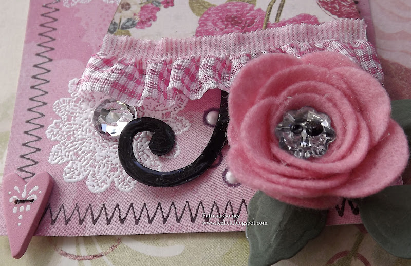 La rosa cortada en fieltro es el troquel Sizzix 3d Flowers Die, y las hojas Spellbinders Foliage.